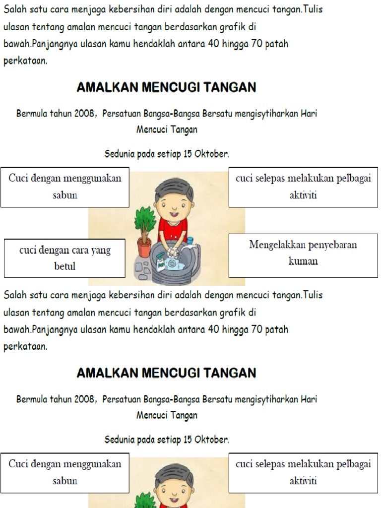 Ayat Pertama keraplah mencuci tangan dengan air dan sabun untuk mengelakkan Huraian penyebaran penyakit. Tak payah nak pasang mucung sedepa dekat sini. Agar bisa mempengaruhi orang lain tentunya dibutuhkan trik khusus saat menulis teks ini.